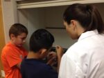 To thank our very generous supporters, SFS invited the children of our supporters and their employees to participate in a fun filled day of science this past Saturday at our annual Donor Appreciation Day hosted by New England BioLabs in Ipswich. Using forensic science, participants worked to solve “The Candy Genome Project Files: The Mystery of Formula X”. The young scientists participated in a series of workstations to analyze the evidence gathered from this perfect candy crime. As part of their explorations, they were able to use chromatography, hair identification, soil analysis, fingerprints and more to determine who had committed the crime. As you can see from the photos below, it was a great day, thanks to all who participated!