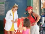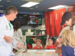 Fans had a chance to study the Law of Reflection by experimenting with lasers and mirrors. They used this new knowledge to play “baseball air hockey.” The goal of this experiment was to find the correct angle to get the “ball” to reflect off the “bat” and hit a target. We even had a chance to check out some cool robots and watch the Dr. Erika show!