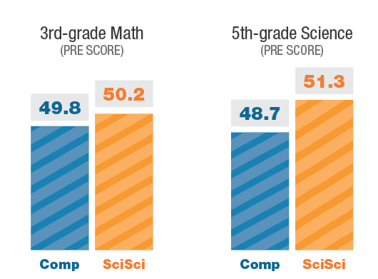 A 2020 matched pairs study conducted by SciSci and a partner school district showed that fifth-grade students who participated in SciSci programming had a 10% higher proficiency score relative to a comparison group of nonparticipating peers.