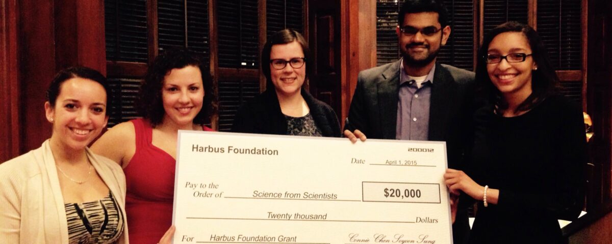 At the Harbus Gala on April 1st, Science from Scientists received a donation of $20,000 from the Harbus Foundation. In addition to the donation we received in the area of Education, other inspiring non-profits received donations in areas of Literacy and Media. Thank you Harbus Foundation for your very generous support!