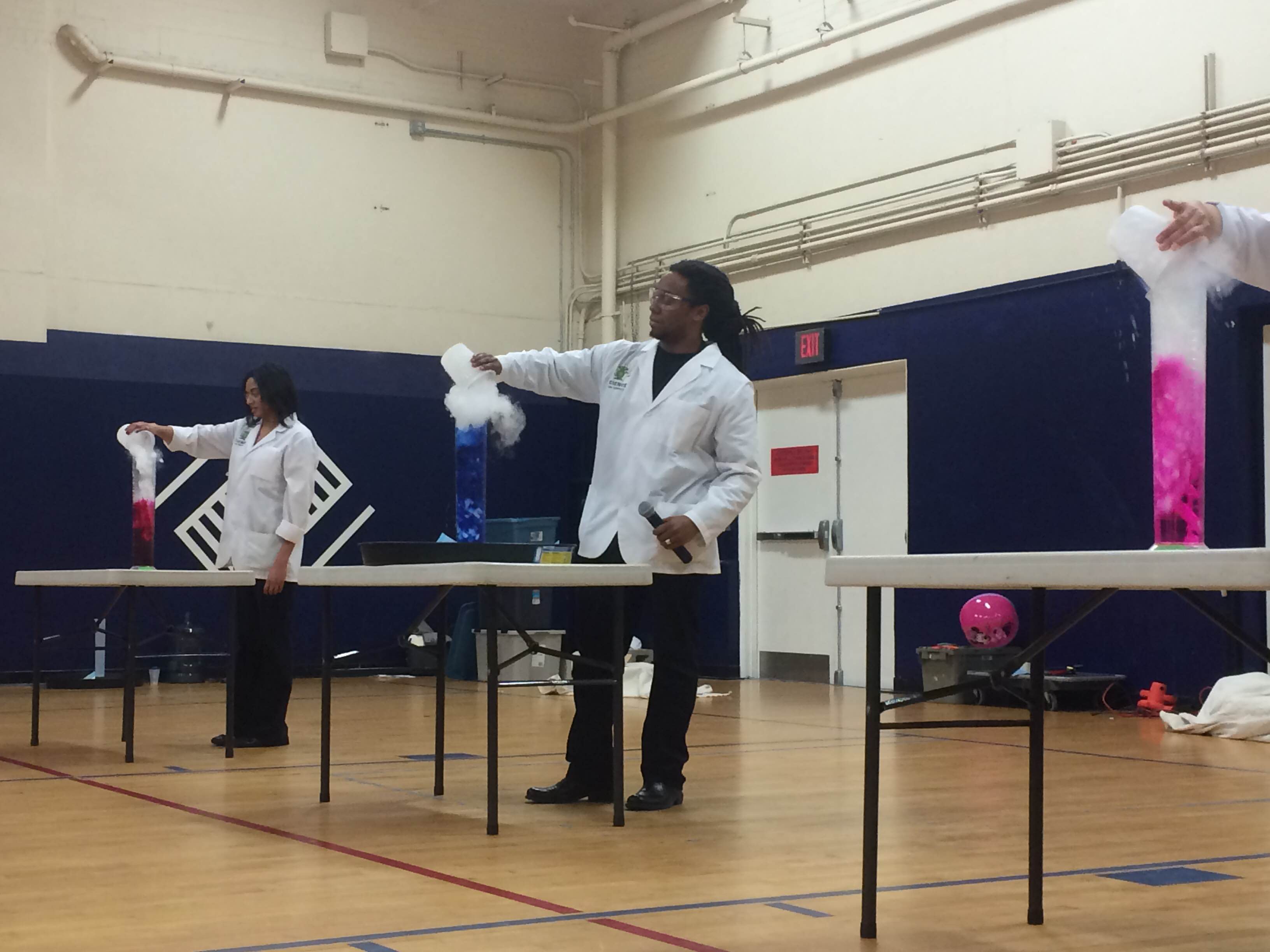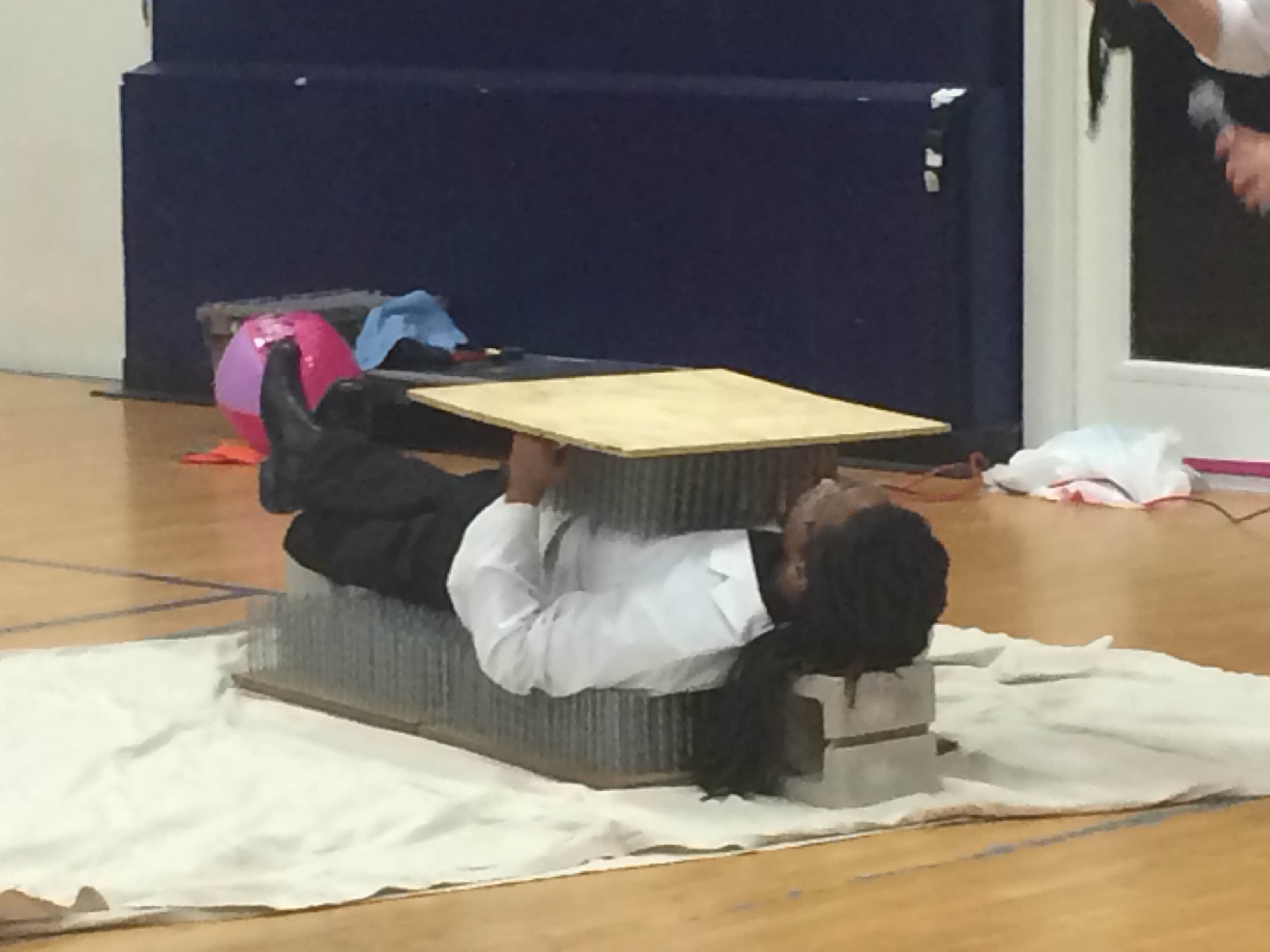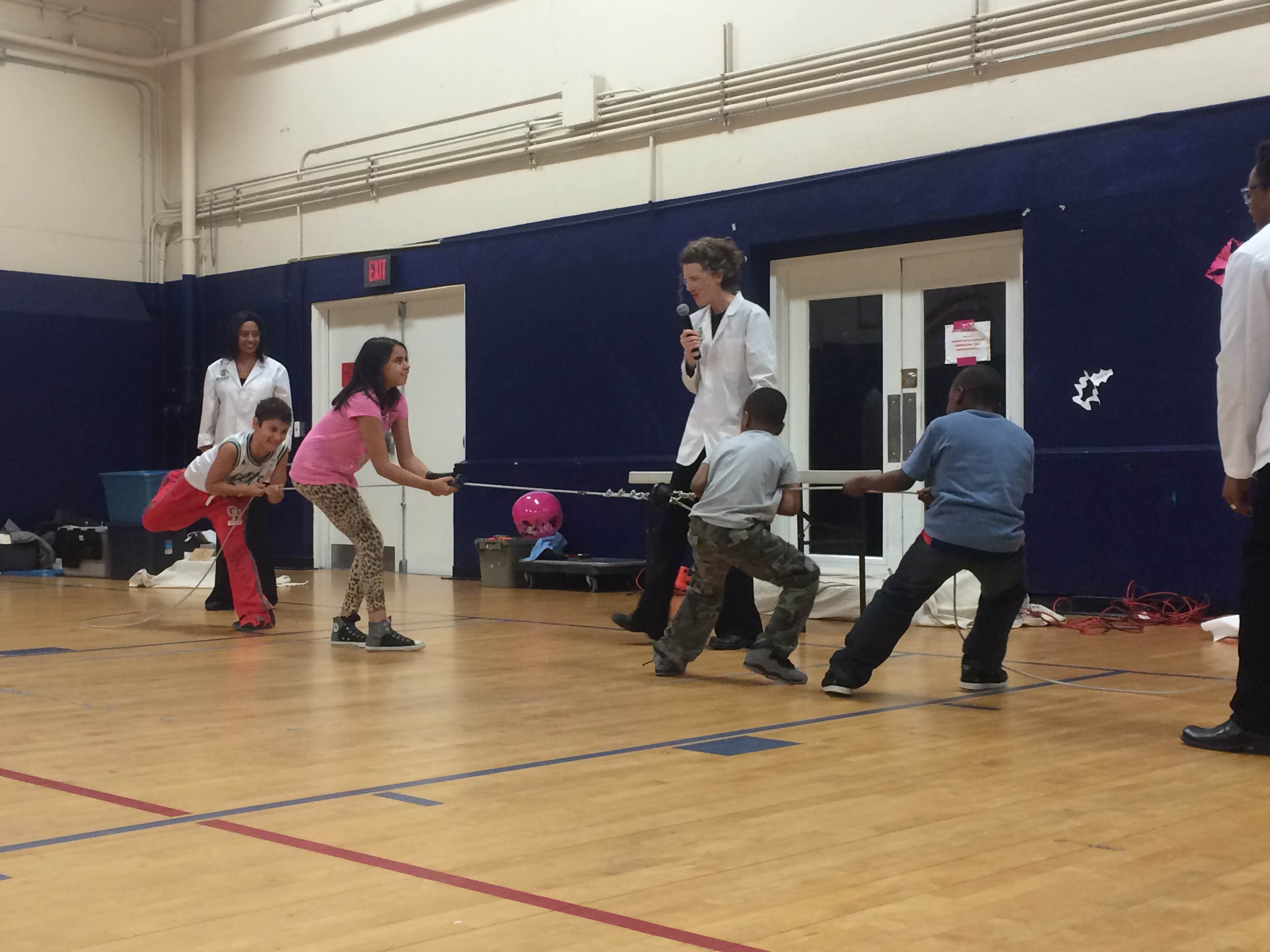 Scientists presented our Science Theater at the Boys and Girls Club in Medford on December 11th. Students learned the science behind the Bubbling Cylinders, played tug-o-war with the Magdeburg Hemispheres and watched one of our scientists lay on the audience favorite Bed of Nails. Click on this link to see a video of the Bed of Nails.