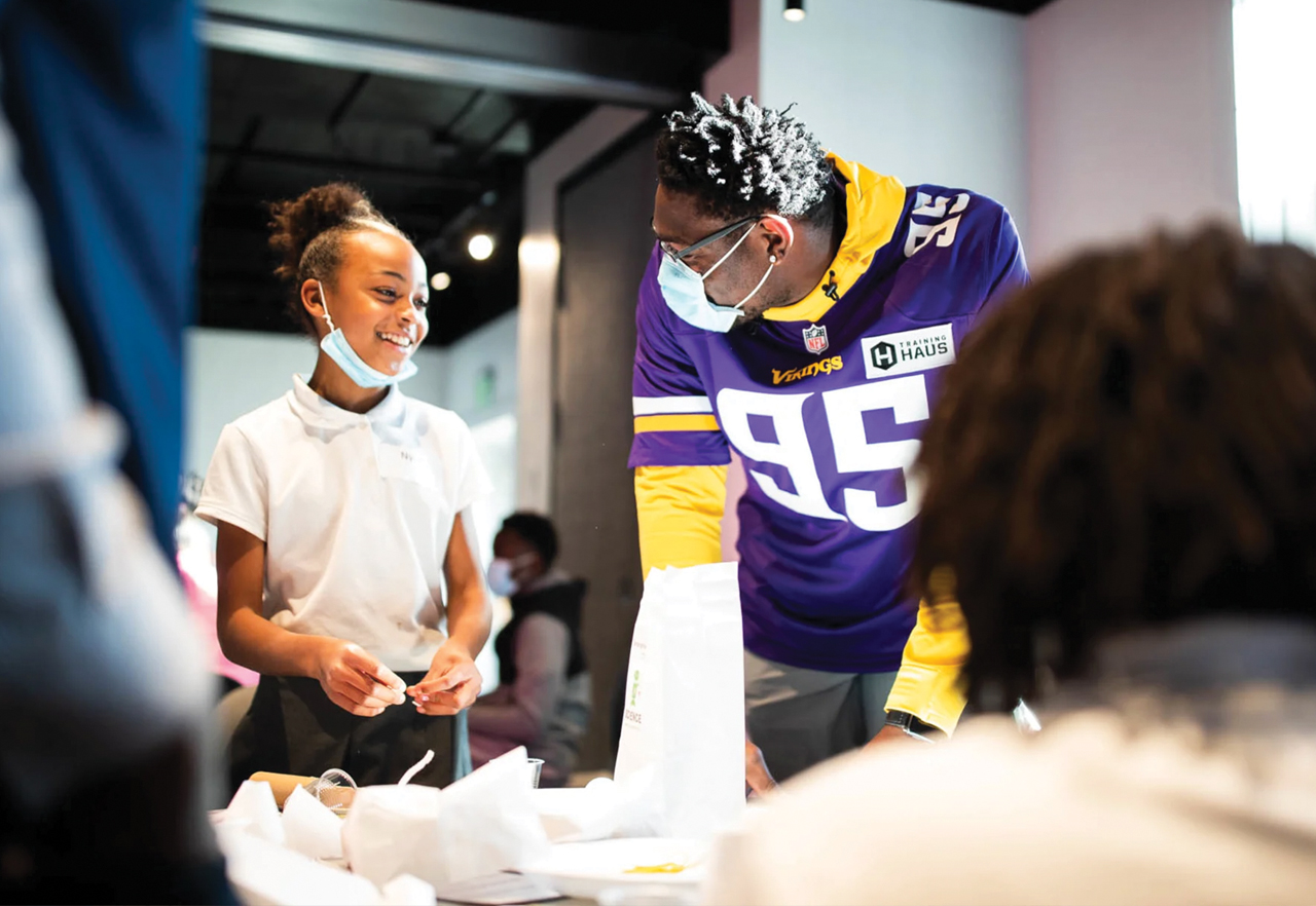In 2021, SciSci partnered with Medtronic Foundation, the Minnesota Vikings, and the Northside Achievement Zone for an event at the Minnesota Bakken Museum. About 50 students from two different schools attended our event. SciSci taught the students about simple machines, and then the students built and demonstrated Rube Goldberg devices using the simple machines. Volunteers from Medtronic and several Vikings players helped the students build their devices.