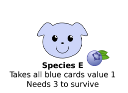 It’s incredibly good at finding its food. All blue cards with a value of 1 must go to Species E.