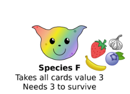 Each species can only eat certain colors, so be sure to place your card on a species that can eat it.